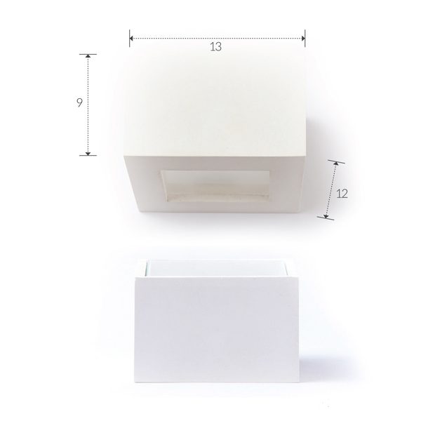 Applique a forma di cubo basso, con apertura sia inferiore che superiore schermata da vetro, per duplice diffusione della luce. Un prodotto versatile, dal design essenziale e moderno, perfetta per le pareti di tutti gli ambienti, grazie alla sua forma lineare ed elegante. Il fascio luminoso bidirezionale crea incantevoli effetti scenici, concedendo ampia libertà progettuale, ed apportando un tocco ricercato agli interni.