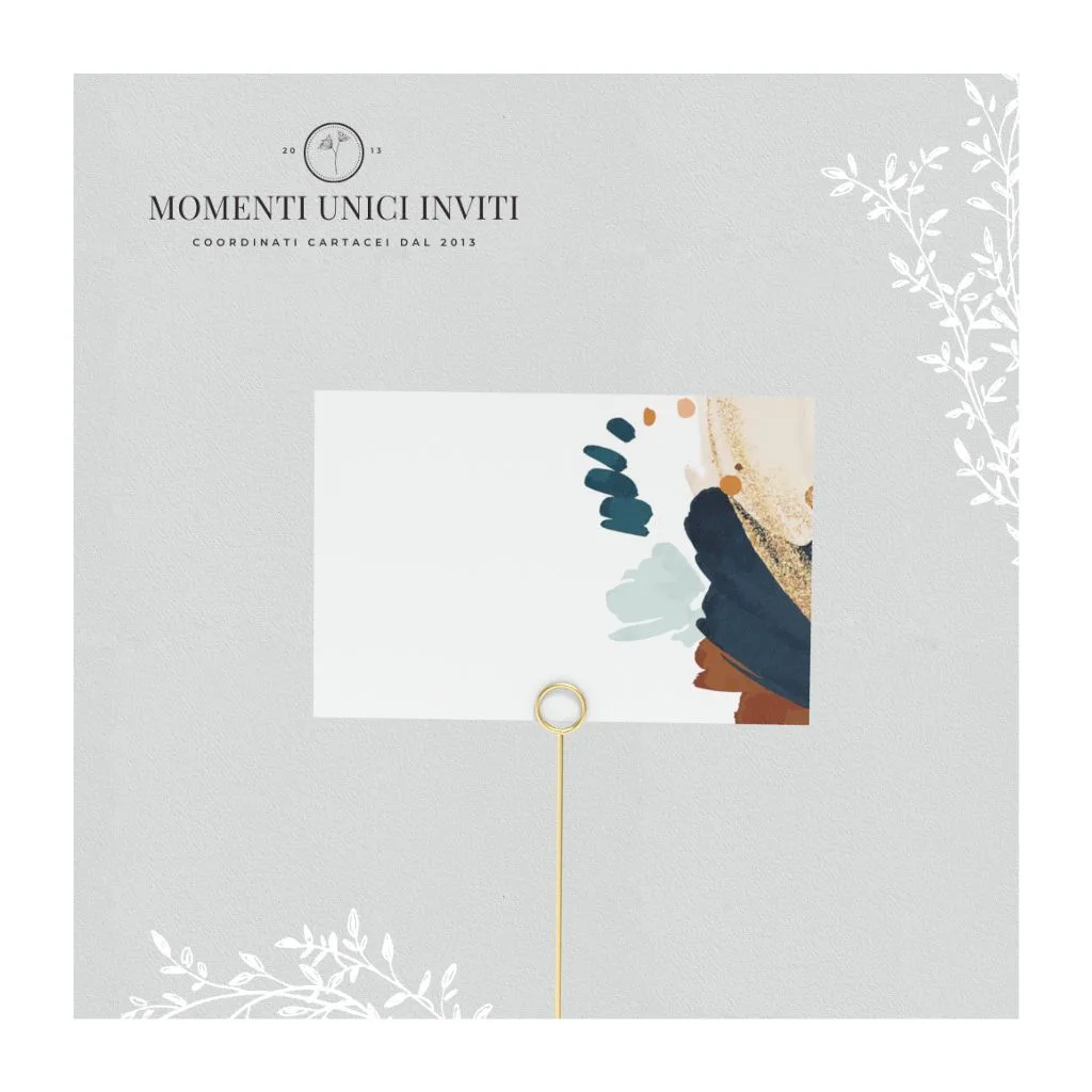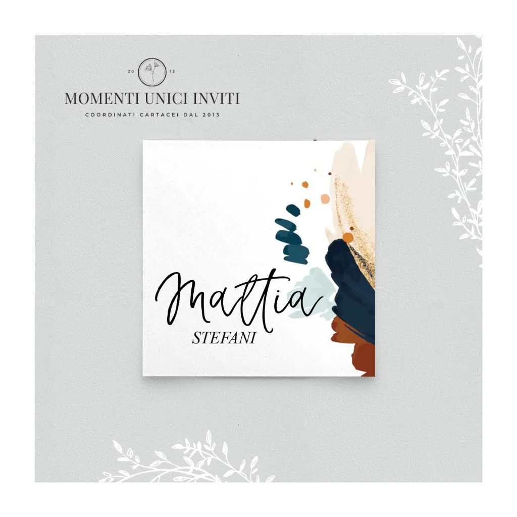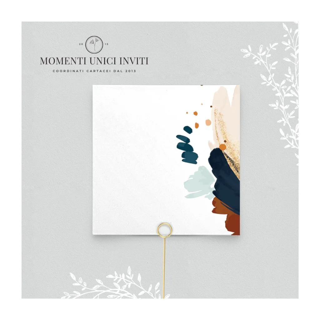 Segnaposto quadrato o rettangolare con grafica moderna in coordinato con tutta la suite della collezione “Astratta”.