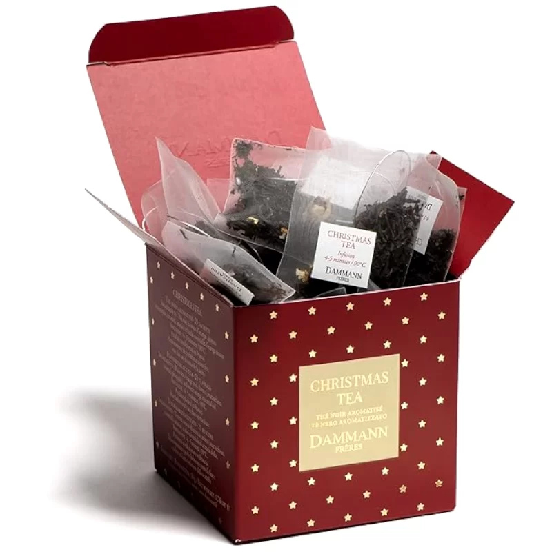 Uno dei quattro must natalizi Dammann Frères disponibili in un astuccio da 25 sachet Cristal®. Elegante confezione di nuovo design per celebrare il Natale. Deliziosamente fruttato, un tè nero che miscela i gusti dell’arancia e dell’ananas con un pizzico di maraschino e a quelle golose del caramello. Dolce, delicato, un meraviglioso tè festivo!