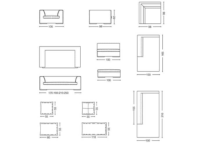 • Pouff: L 100 – P 100 – H 62 cm