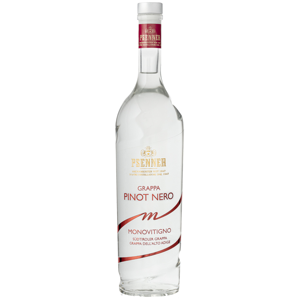 Pregiata grappa monovitigno ottenuta mediante distillazione con metodo discontinuo in alambicchi a bagnomaria usando esclusivamente vinacce dell‘uvaggio Pinot Nero provenienti dai vigneti dell‘Alto Adige, vinacce che vengono accuratamente controllate e selezionate. La qualità del prodotto è espressamente certificata dal marchio di “Qualitá Alto Adige”. Al palato la grappa Pinot Nero si presenta armoniosa e delicata. Si percepisce un tono leggermente erbaceo e un lieve profumo di frutta matura. Colpisce i palati attenti con il suo gusto caldo e persistente.