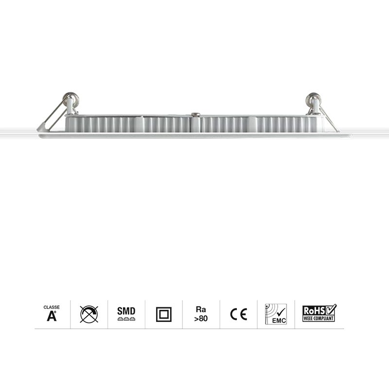 Faretto LED da incasso quadrato con corpo in alluminio pressofuso. Un prodotto con un’ottima performance luminosa in uno spazio ridottissimo: solo H 18,5 mm. Presenta un design pulito e moderno che concilia funzione ed estetica, ed illumina gli ambienti in modo sofisticato, mettendo in risalto i dettigli. Il faretto si incassa al soffitto tramite molle di fissaggio incluse. Le dimensioni ridotte e la potenza luminosa lo rendono ideale per un’illuminazione importante con più punti luce, per essere installati dove si necessitano spazi ridotti o semplicemente per illuminare un’oggetto da valorizzare o una nicchia. In linea con le tendenze attuali di interior design, questo tipo di prodotto si rivela versatile e vincente per creare ambienti unici.