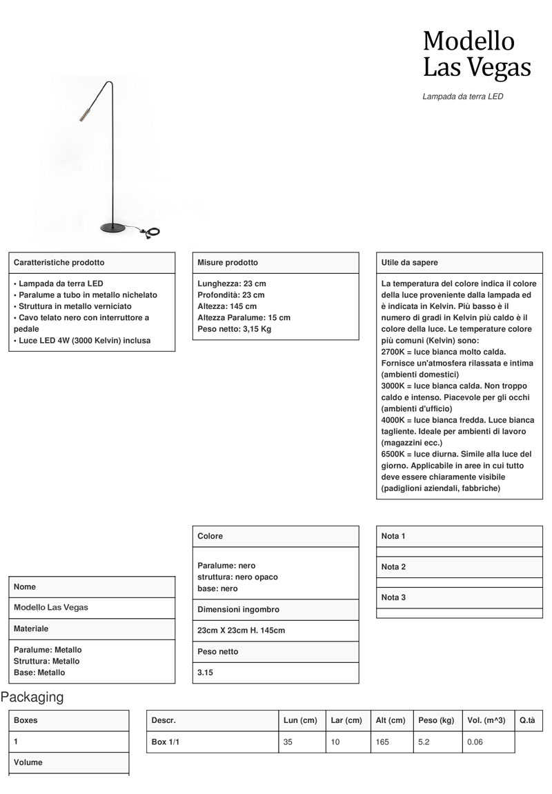 Misure Lampada: L 23 cm X P 23 cm X H 145 cm