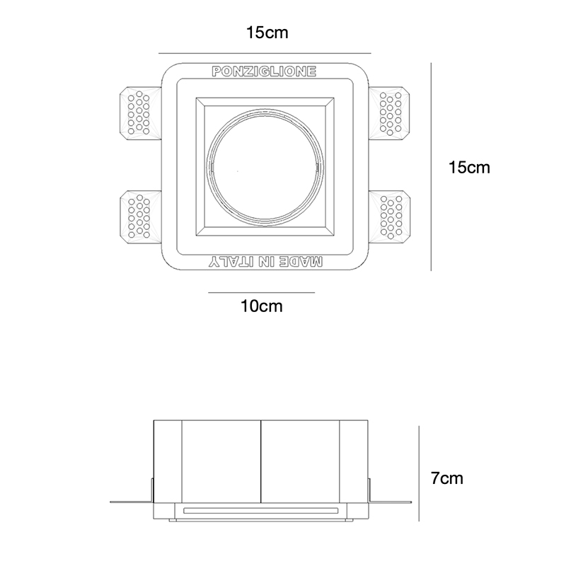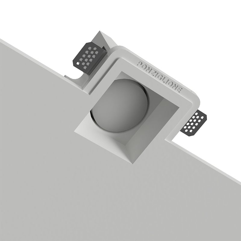 Porta faretto quadrato in gesso da interno, per inserimento in controsoffittature.