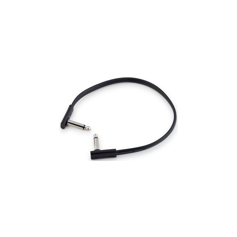 RBO CAB PC F 30 BLK – Patch cable piatto (Jack Mono 6,3mm Angolo 90/Jack Mono 6,3mm Angolo 90) – Black Series – Connettori a 90 gradi compatti ed ultra piatti con finitura cromata e punta cromata – Cavo con profilo rettangolare 7x3mm – Cavo: Flexible copper conductor 20×0,12mm + Twisted copper shielding 34×0,12mm + PE (polyethylene) signal insulation + Outer PVC insulation – Temperatura di funzionamento: da -15C a +70C – Lunghezza 30cm – Colore cavo: nero.
