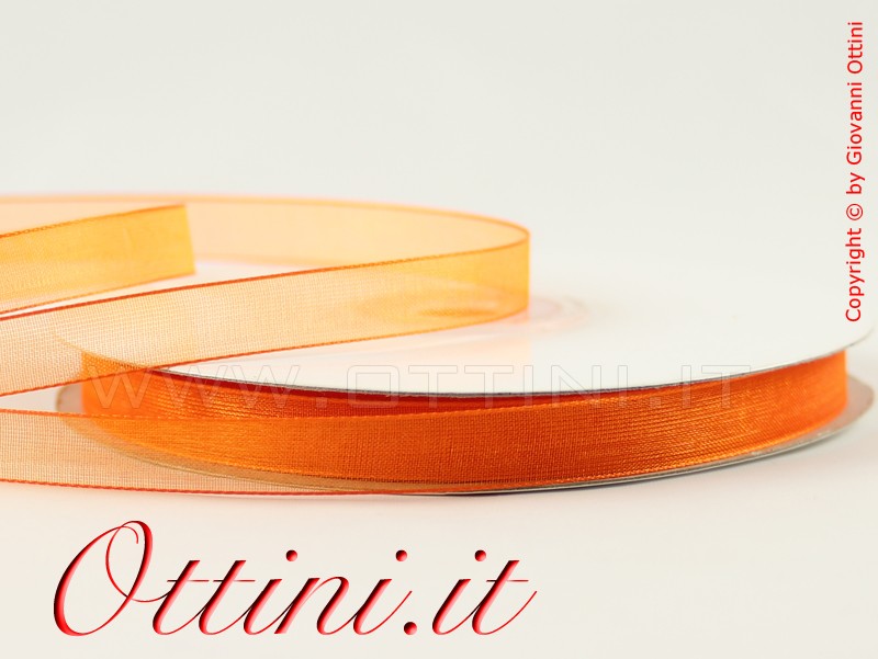 Rotolo da 50 mt di Nastro colore Arancio in larghezza 10mm reali in brillante Organza Kristall di altissima qualità.