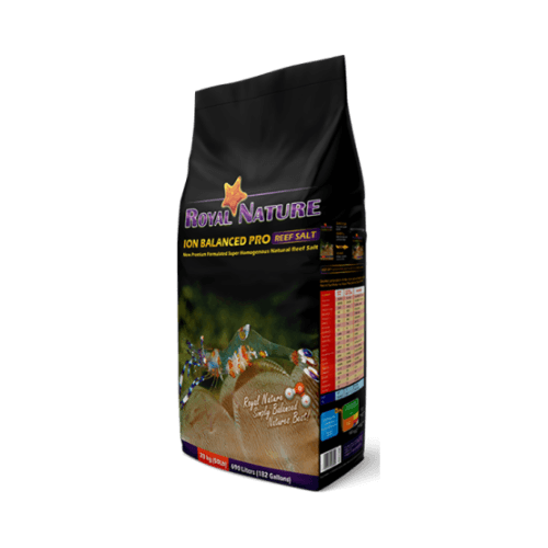 Questa speciale formula chimica rende il Royal Nature Ion Balanced Pro Salt pronto per l’uso dopo appena 30 minuti dalla miscelazione, senza alcun deposito sul fondo ed ottenendo subito un’acqua cristallina. Privo di fosfati e nitrati, Royal Nature Ion Balanced Natural Salt viene prodotto con una formula esclusiva che utilizza ingredienti del massimo livello di purezza e sistemi di miscelazione molto efficienti: il risultato si apprezza nell’acqua assolutamente cristallina e dai migliori parametri che consente di ottenere anche i migliori risultati: un ambiente al massimo della qualità anche per i pesci ed i coralli più delicati.