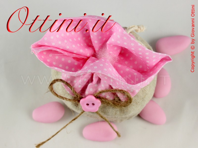 Per quanto riguarda il montaggio, questo articolo è il campione della facilità: si inserisce imbottitura e sacchettino per alimenti con i confetti e si stringono i laccetti già preinfilati. Niente fiocchi e niente cose da cucire, fissare, incollare… tutto fatto e finito. La confezione sarà veramente più facile di quanto possiate immaginare!!!