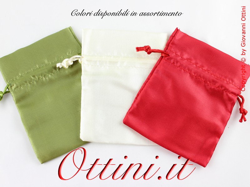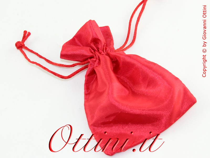 Sacchettino in raso saten rosso molto compatto e di ottima consistenza. La trama compatta è coprente (quindi non si vede quello che c’è dentro). E’ un prodotto di alta qualità dai riflessi lucidi di grande impatto visivo. Per la chiusura è sufficiente tirare i due cordoncini coordinati che sono già preinfilati e fissati come potete vedere nelle immagini.
