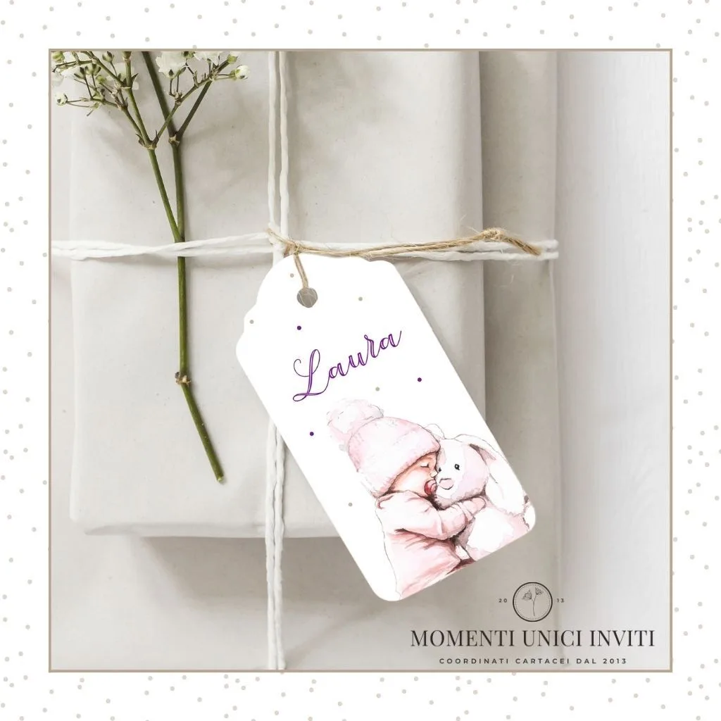 Segnaposto da legare al tovagliolo dell’ospite con grafica in coordinato con tutta la suite della collezione “Dolci Nanne Bimba”.