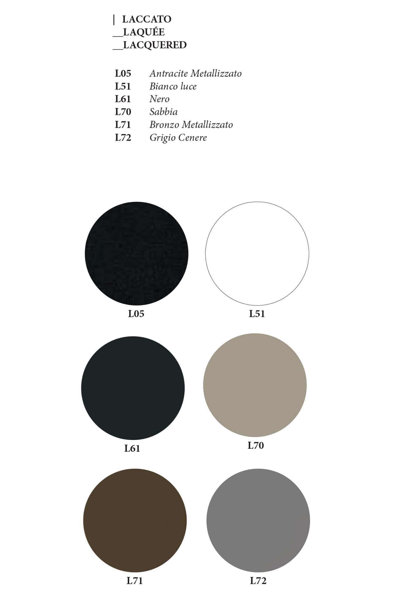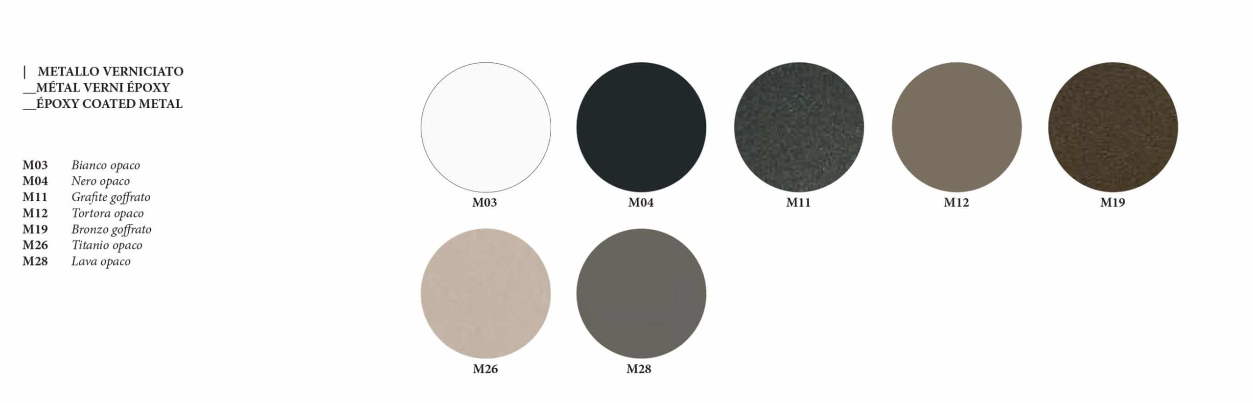 - Base Metallo a scelta tra: M11 (Grafite Goffrato) – M19 (Bronzo Goffrato)