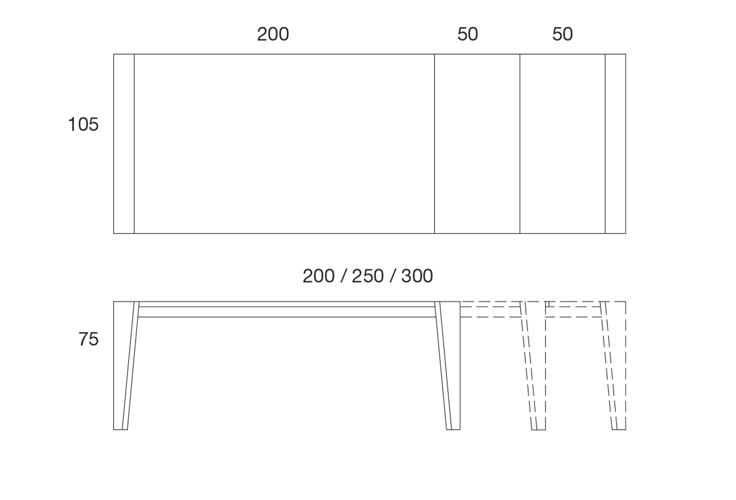 • L 200 cm X P 105 cm X H 75 cm allungabile fino a 300 cm