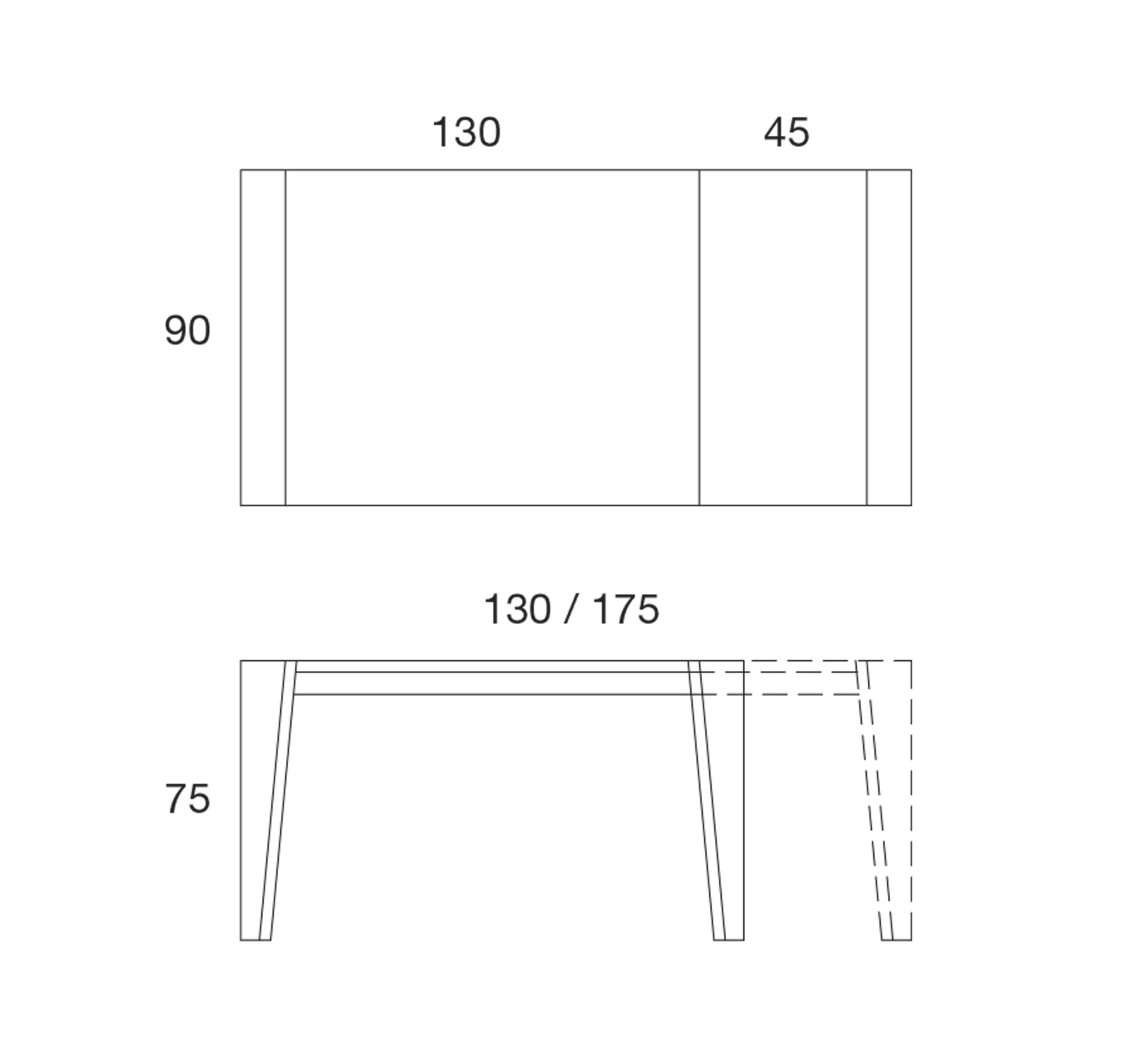 • L 130 cm X P 90 cm X H 75 cm allungabile fino a 175 cm
