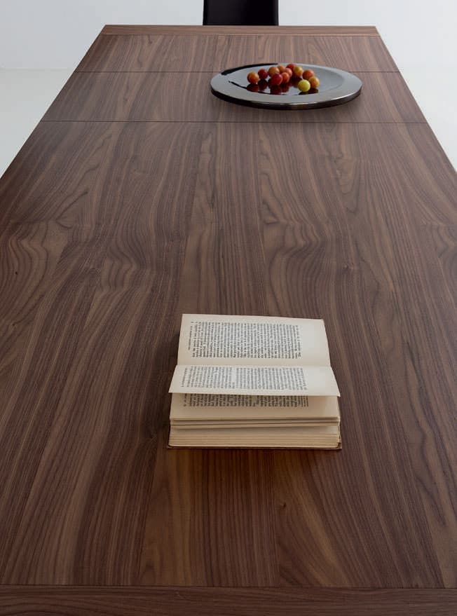 Tavolo allungabile con gambe, piano ed allunghe impiallacciati W10 (Noce Canaletto)