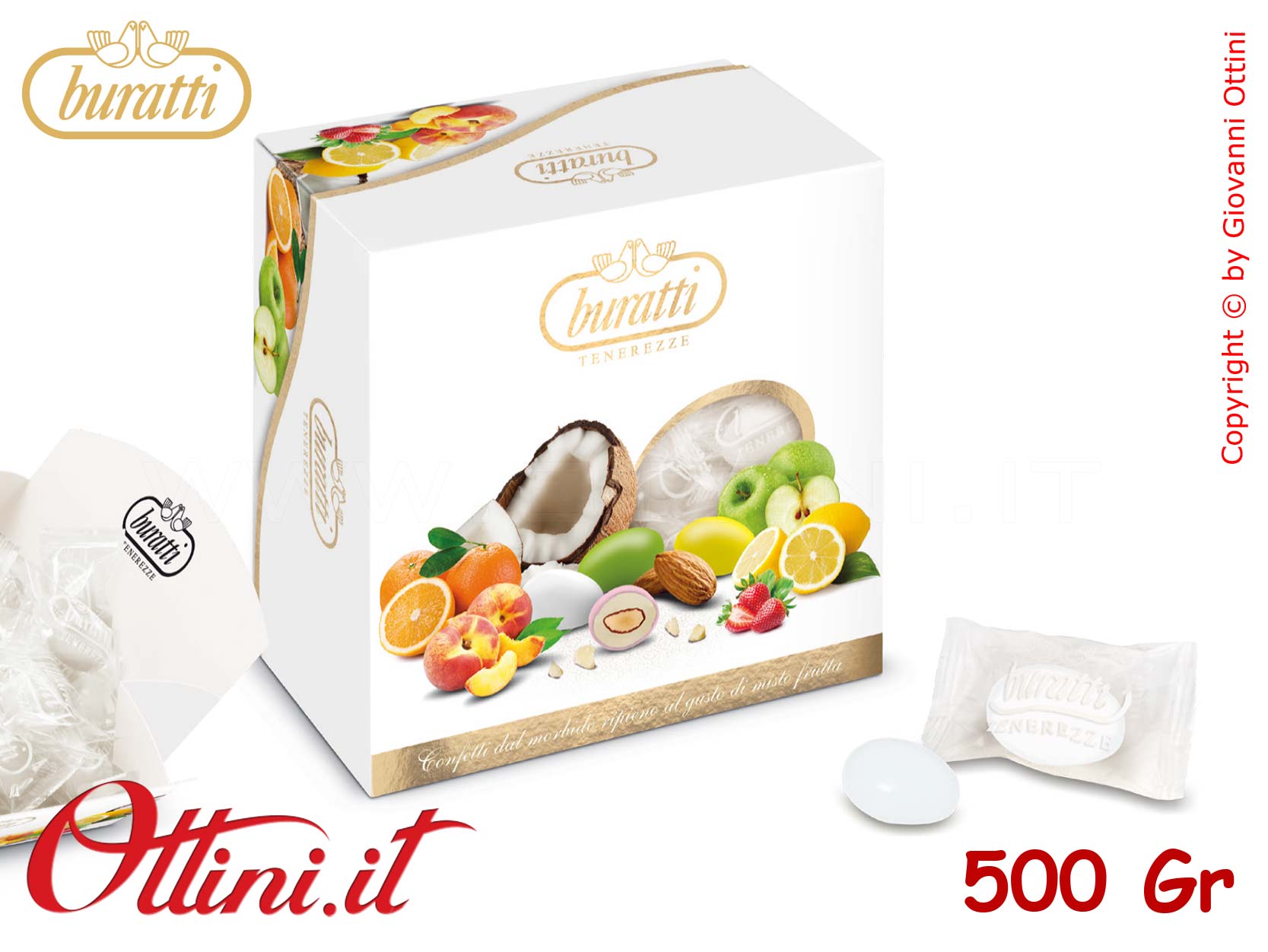 Strepitosi e gustosissimi, sono composti da una morbida mandorla tostata ricoperta da un involucro di cioccolato al latte aromatizzato ai frutti e avvolto in un sottile guscio di zucchero. Questi confetti sono soprattutto morbidi da mordere e masticare, hanno una dimensione “generosa” che appaga ad ogni assaggio. In breve, 6 Fantastici gusti e colori : Cocco, Fragola, Limone. Pesca. Arancia, Mela Verde.