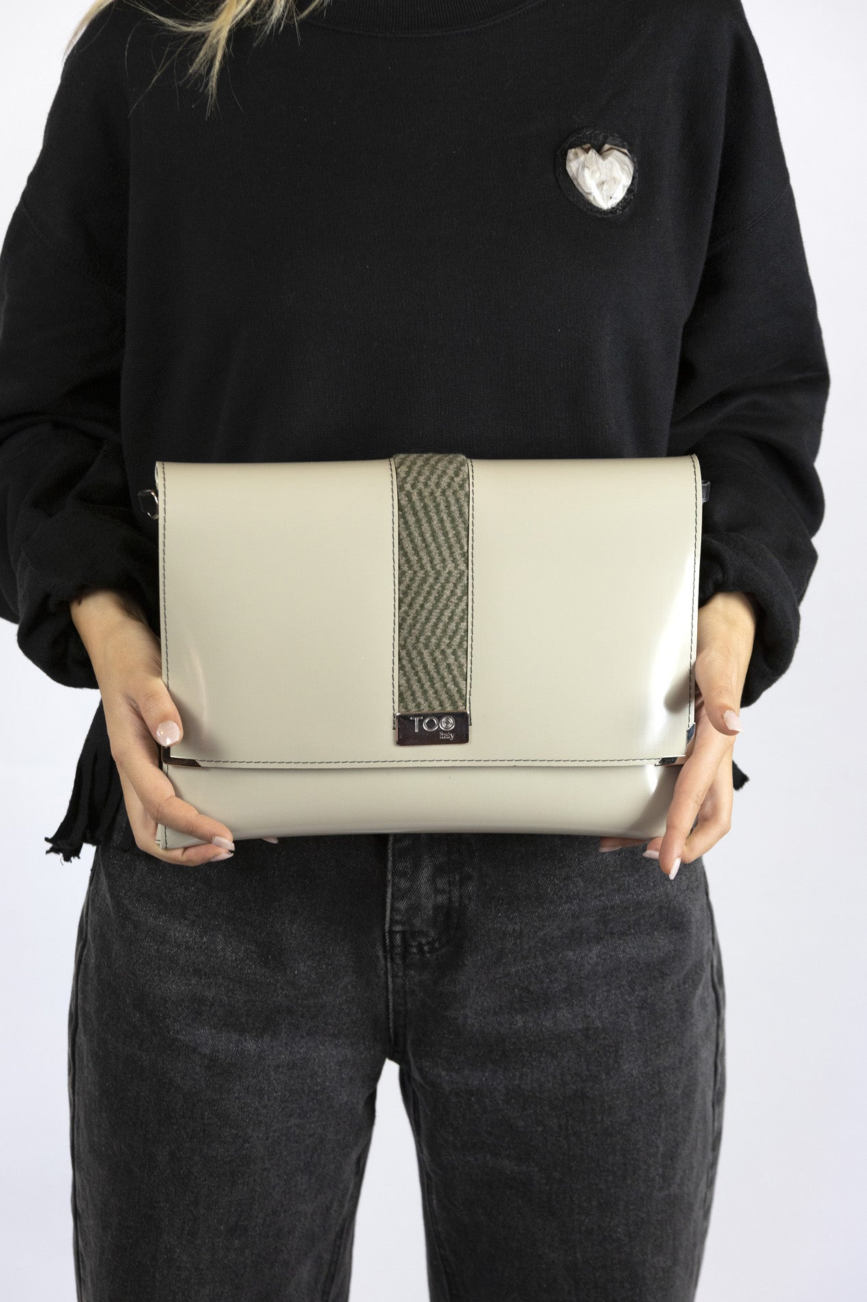Manici in Catena che permettono di portarla a tracolla, spalla o a mano