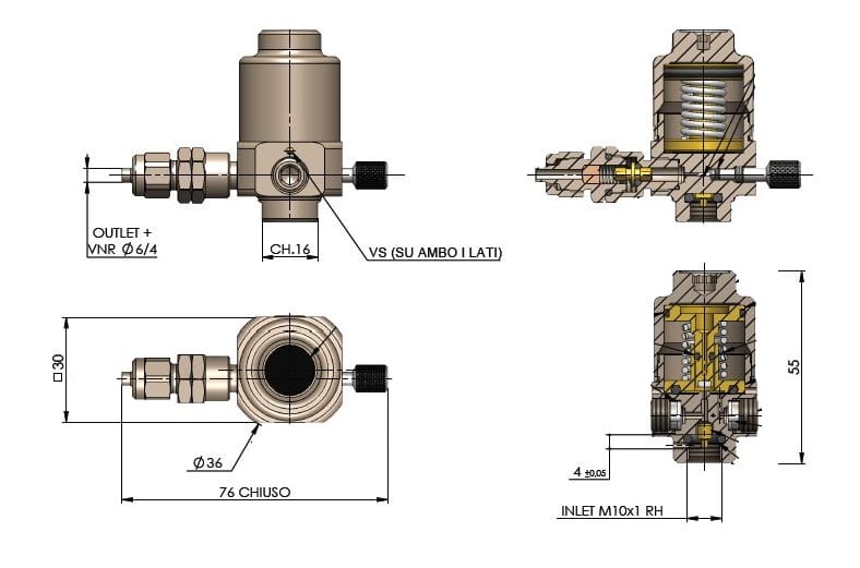 L’ uscita invece è affidata ad un outlet VNR Ø4/6 su cui montano tubi standard per CO2.